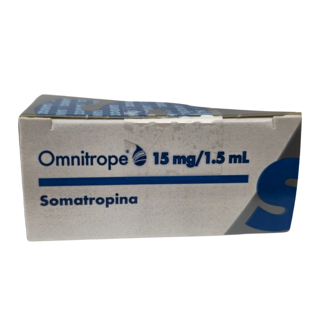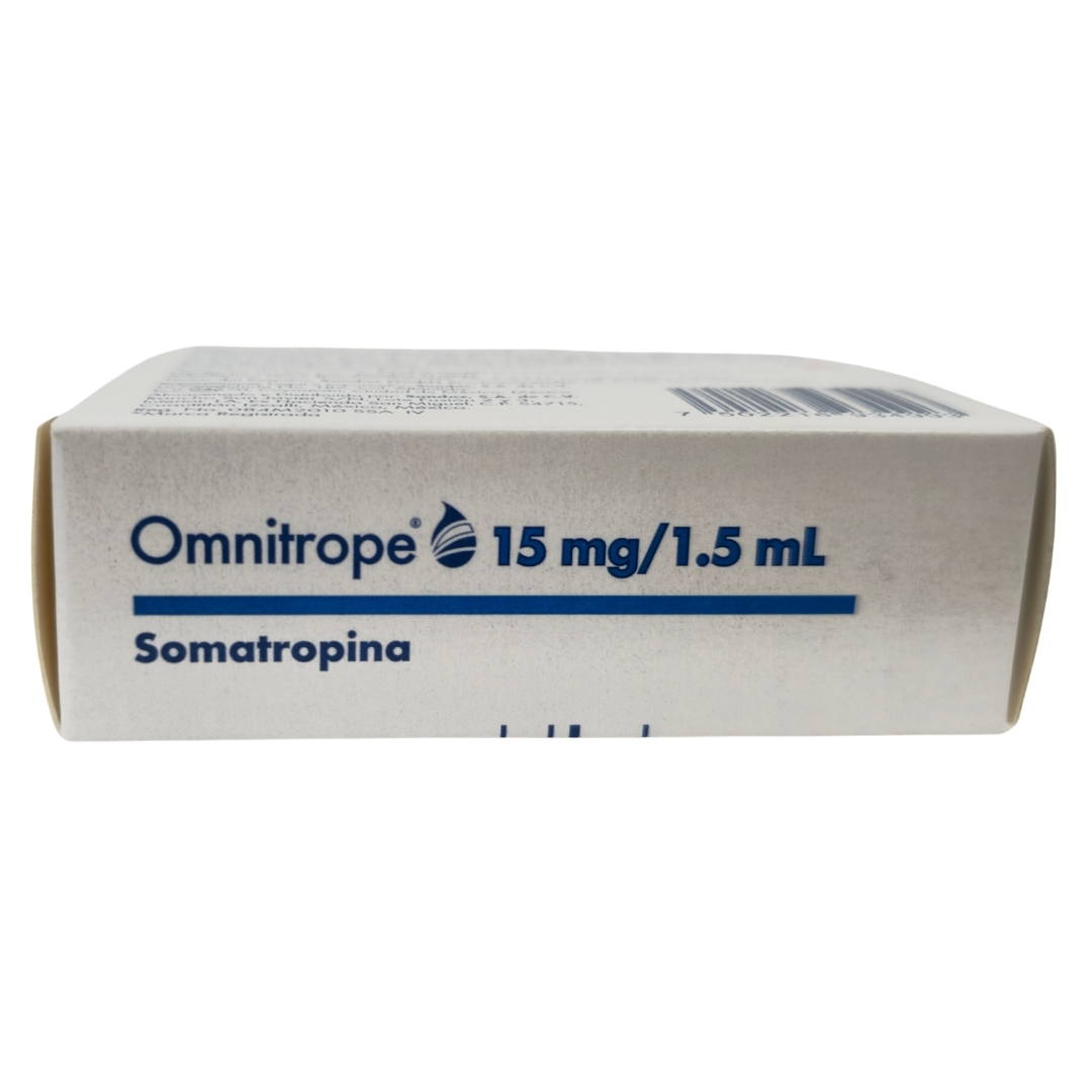 Omnitrope 45 UI (15 mg) Hormona de Crecimiento .  cartucho contiene El cartucho contiene  Somatropina 15 mg en 1.5 ml de solución. Conservación: Conservar refrigerado ; evitar congelar. Precauciones: Uso bajo estricta supervisión médica. Seguir las indicaciones para minimizar riesgos y maximizar eficacia.